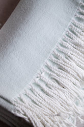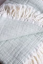 Manta con flecos, decorativa y fresca, diseñada para brindar suavidad y calidez en cualquier espacio.